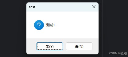 mes = win32api.messagebox(none, "测试1", "test", mb_yesno | mb_iconquestion) print(mes)