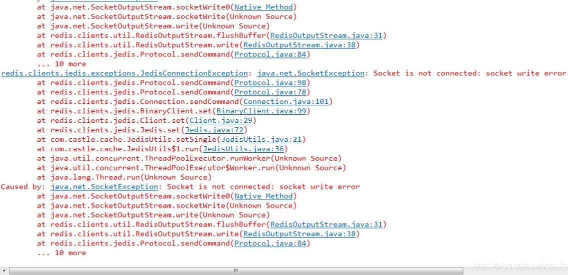 redis.clients.jedis.exceptions.jedisconnectionexception: java.net.socketexception: socket is not connected: socket write error