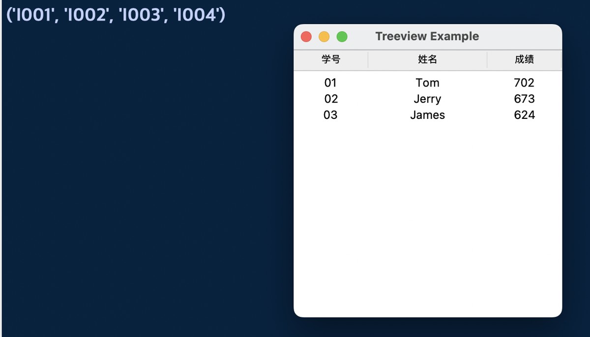- ttk,treeview() 中的 show="tree headings" 改为 show = "headings" ,这将忽略 treeview 创建的第一空列(即 #0 );