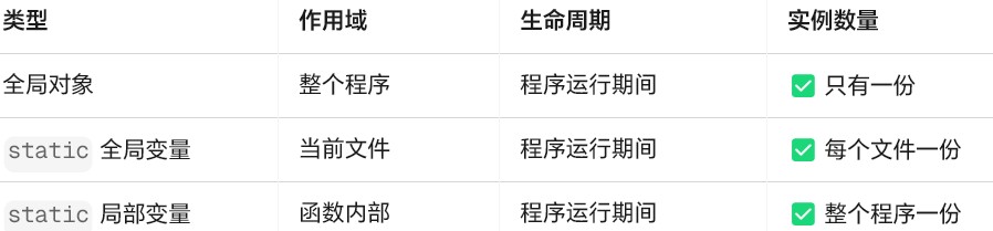 - 其次,我们正常来说一个类是不可能只实例化出一份对象的,所以我们要想到全局对象或者静态对象在作用域内是只有一份的,