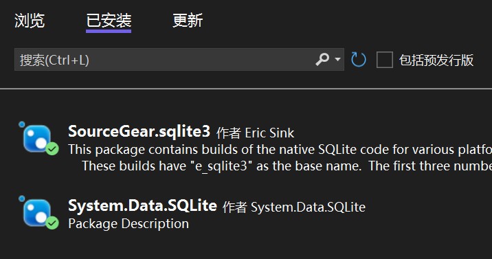 system.data.sqlite 可在 nuget.org 上获取。典型用法通常需要添加两个 nuget 包:一个用于 system.data.sqlite,另一个包含 sqlite 的本机构建(例如 system.data.sqlite.core)。例如: