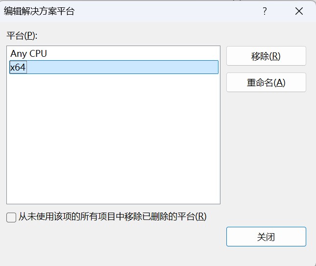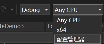 如果你不想使用 x64 ,想删除这个选项,也很简单,同样是点击配置管理器