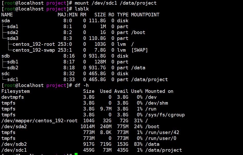mount /dev/sdc1 /data/project