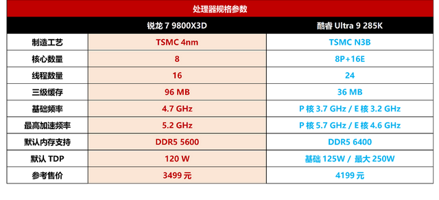 价格方面,锐龙7 9800x3d目前盒装参考售价大约在3499元左右,而酷睿ultra 9 285k则要4199元左右,明显要贵不少。而且,处理器功率对于装机成本来讲也是影响很大的。酷睿ultra 9 285k要完全发挥性能的话,满载功率会高达250w甚至更高,因此它需要搭配供电规格更高的主板、更高端的散热器和更高功率的电源。相比之下,锐龙7 9800x3d的tdp仅为120w,不管是入门级的a620还是旗舰级的x870e都可完美适配,装机自然是丰俭由人,灵活度更高。