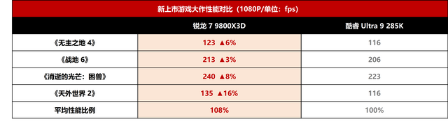 很明显,不管是玩最新游戏大作,还是玩经典游戏大作,锐龙7 9800x3d都是比酷睿ultra 9 285k体验更好的选择。