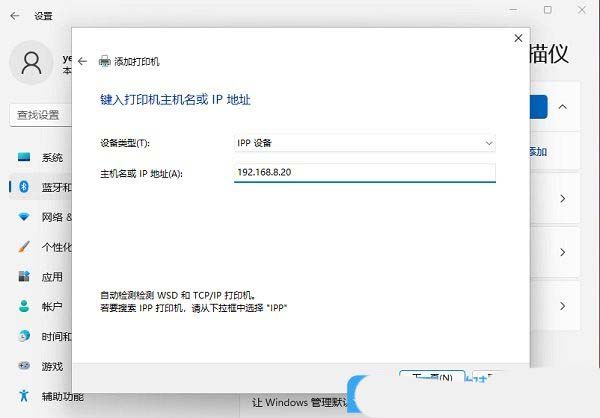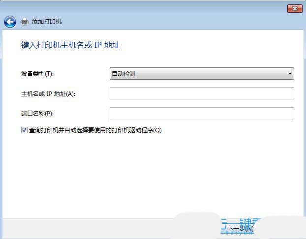 6、输入添加打印机的“主机名或ip地址”,再点击下一页,直到完成向导即可。