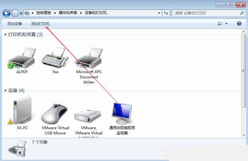 3、然后,在打开的界面中,点击上方工具栏的“添加打印机”选项。