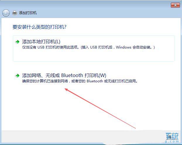 4、随后,在弹出的向导中,选择添加网络打印机,点击下一步。
