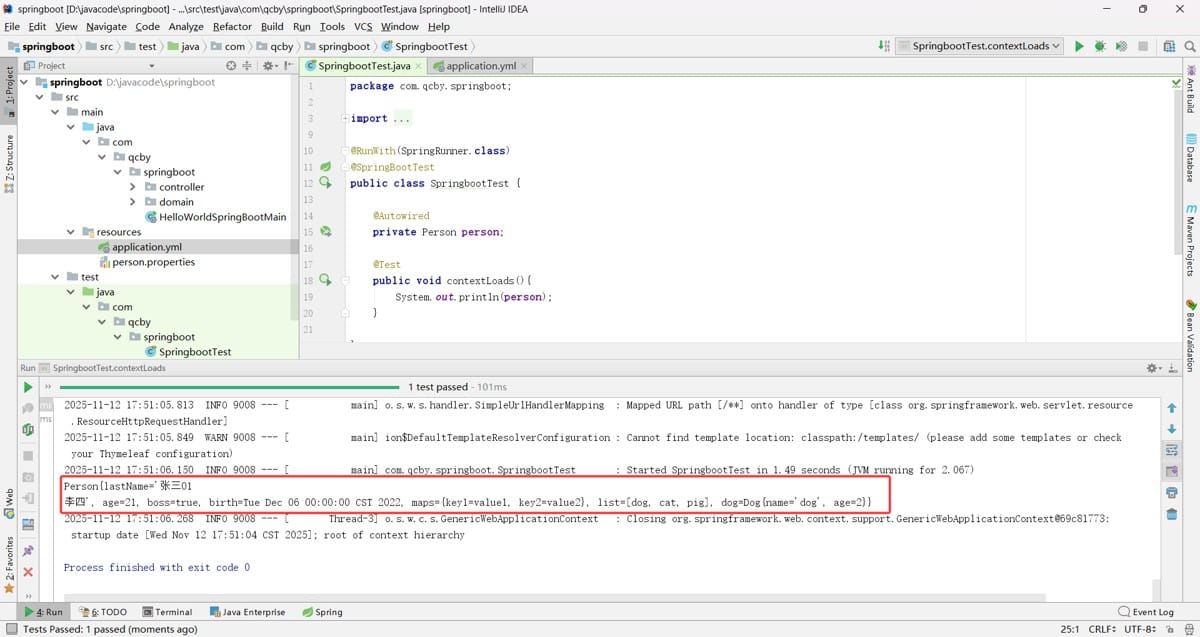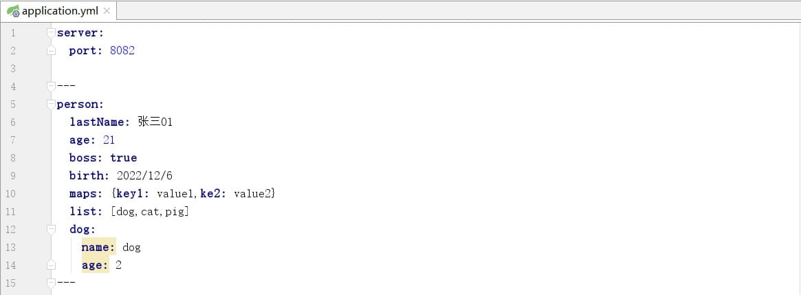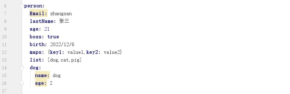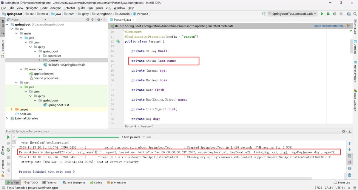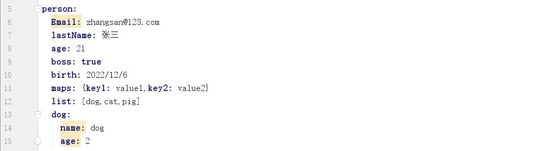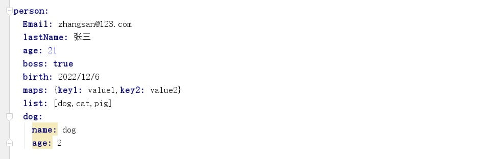 prefix = “person” 用于明确绑定配置文件中以 person 为前缀的所有子属性,与当前类字段进行一一映射;