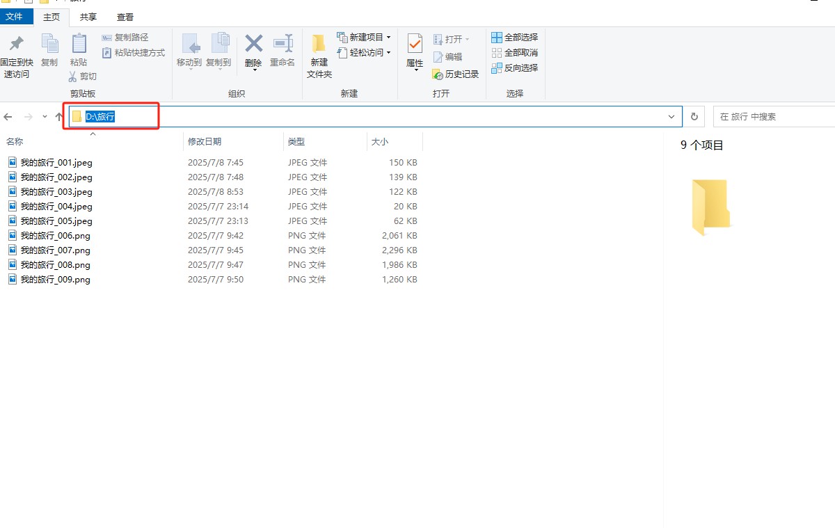 可以自己建立一个文件夹放入一些照片,比如我在d盘建立一个文件夹,名字为旅游,放入一些照片。