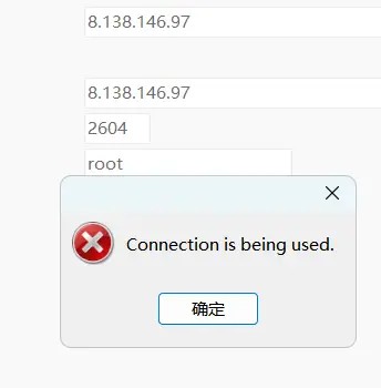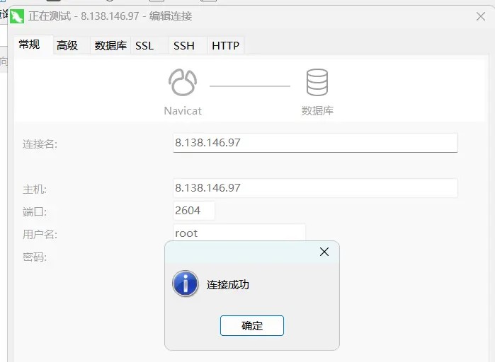 1.4.3此时端口就确认修改好了,使用navicat重新连接时,记得修改端口号(此处2604举例),此时有些朋友可能会显示"connection is being used"