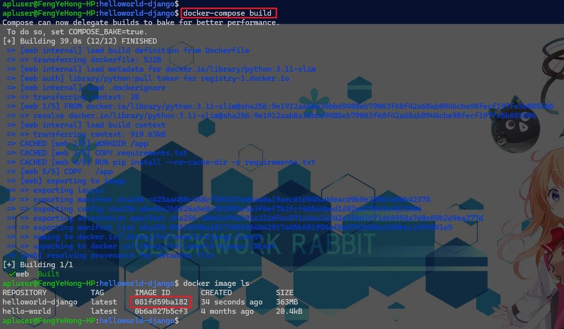 docker image build -t helloworld-django . # 或者 docker image build -t helloworld-django:0.0.1 .