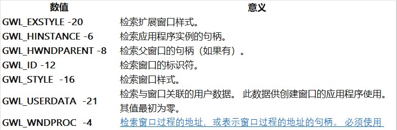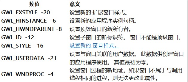 - long nindex:指定要设置的窗口属性的索引。