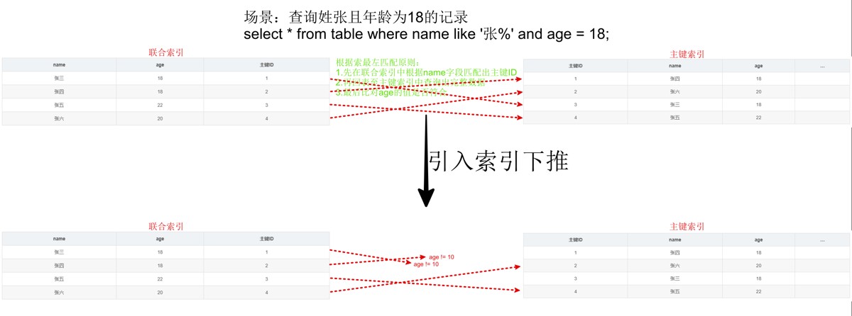 定义:在传统查询流程中,存储引擎仅根据索引筛选数据,然后将满足条件的数据返回给服务层进行进一步过滤。索引下推允许将部分过滤条件下推到存储引擎层执行,减少回表操作和无效数据传输