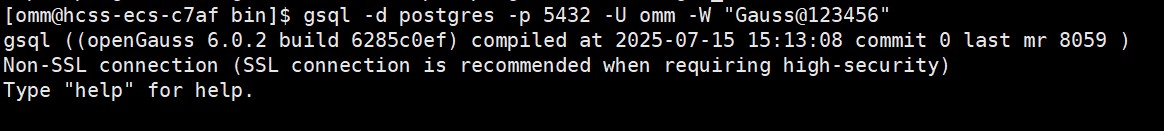 gsql -d postgres -p 5432 -u omm -w "gauss@123456"
