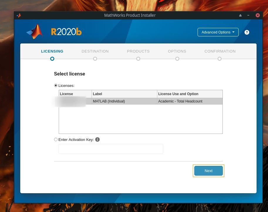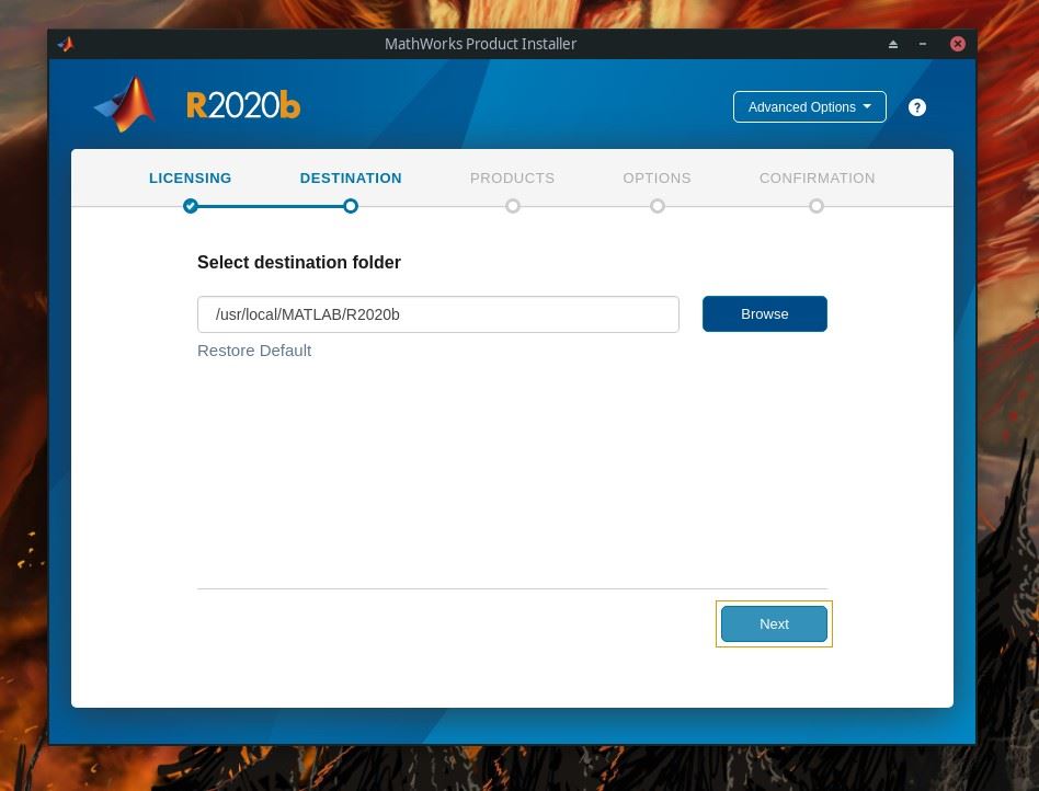 接下来是选择位置,由于matlab安装需要较多空间,可以先使用df -h查看磁盘占用情况: