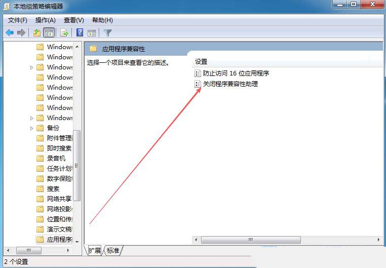 3、然后,找到并双击打开其中的“关闭程序兼容性助理”设置。