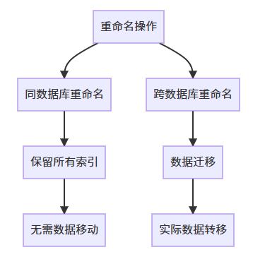 | 跨db重命名 | 全局写锁 | 高(数据复制) | 慢 |