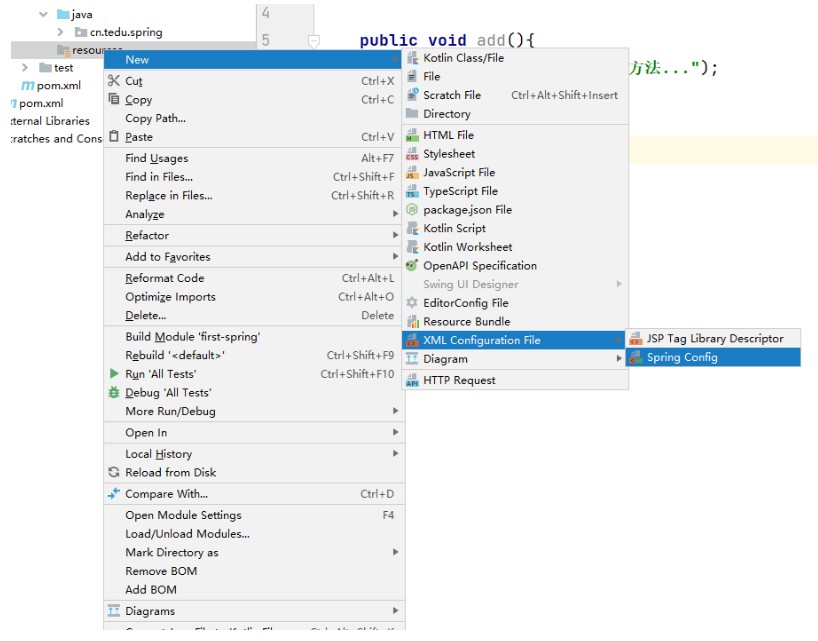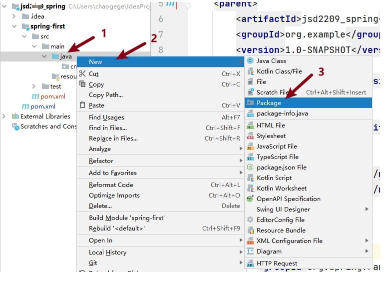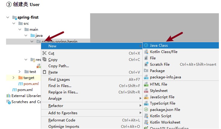 </dependencies>② 在工程中创建包 cn.tedu.spring.begin