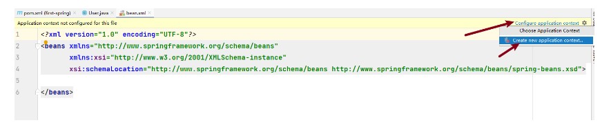 }⑤ 创建spring配置文件:resources目录下创建bean.xml