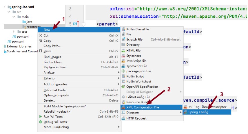 ① 在spring-first/pom.xml中引入相关依赖,并 刷新maven
