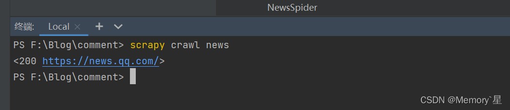 然后在终端输入以下代码来运行爬虫文件: