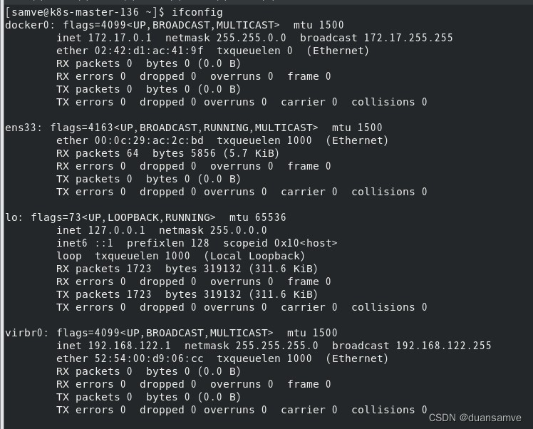 - 输入命令service network restart或systemctl restart network重启网络服务,输入 ifconfig就显示ip地址了。