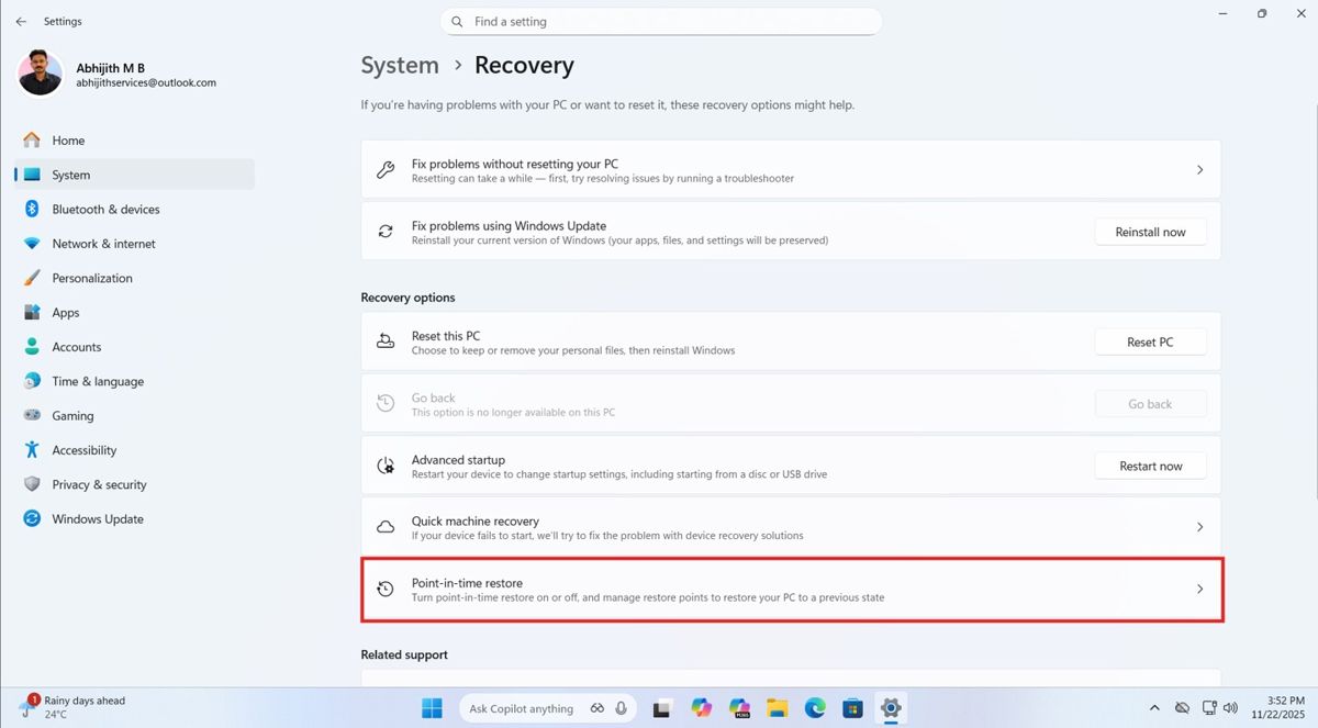 科技媒体 windows latest 昨日(11 月 23 日)发布博文,报道称在 windows 11 预览版中,微软引入名为“时间点还原”(point-in-time restore)的重量级系统恢复功能。