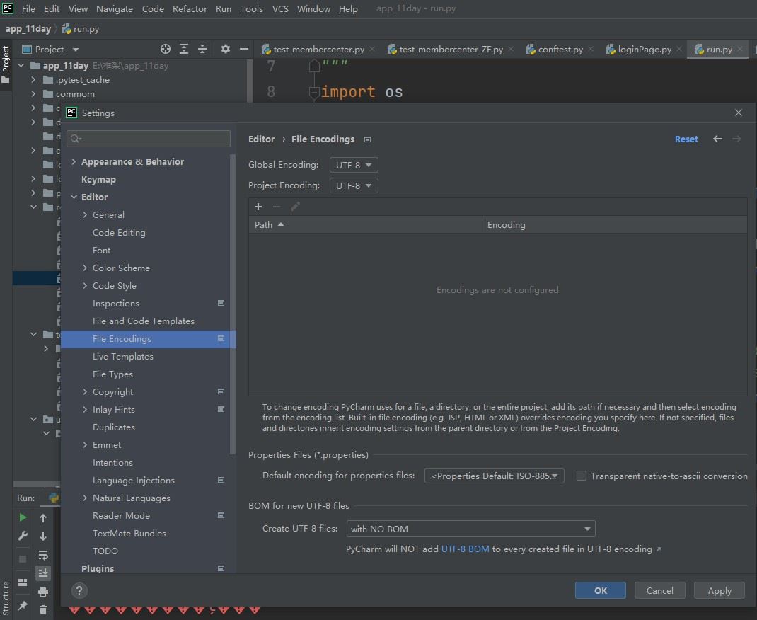 2、设置下编码格式:【file】->【setting】->【editor】->【file encodings】