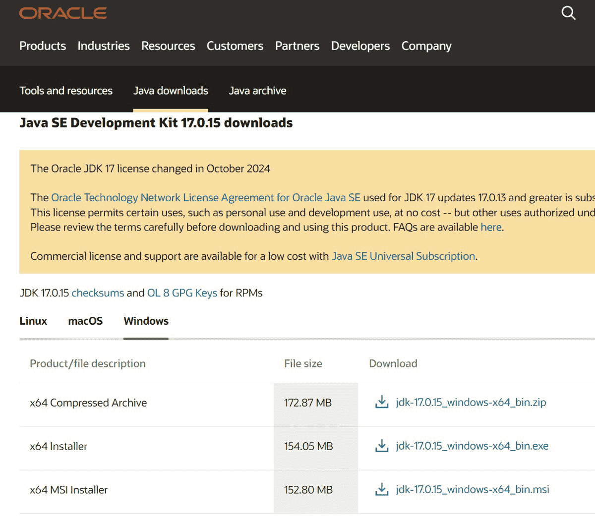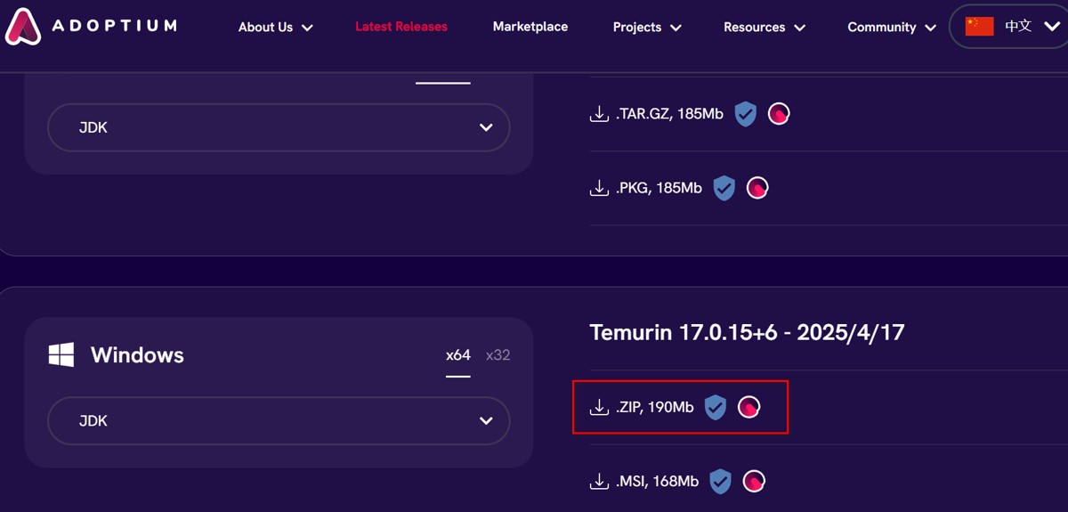 在oracle 官网 或 adoptopenjdk 下载 jdk17 ,或者点击这里下载