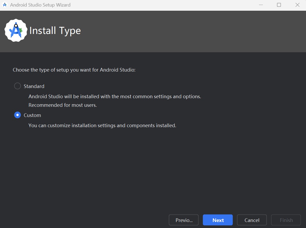 选择设置类型:为避免后续把文件下载在c盘,选择自定义