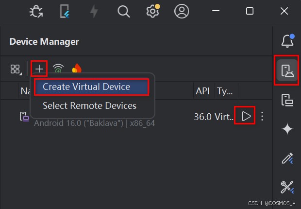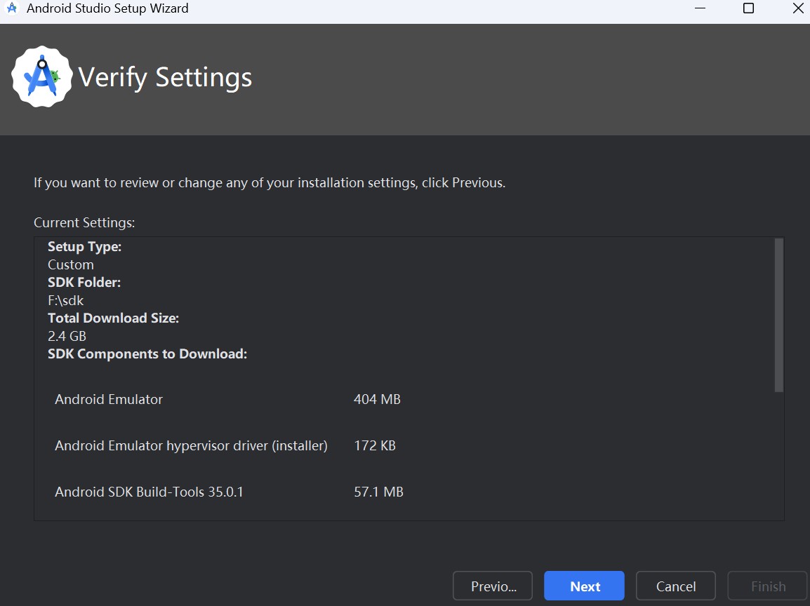 可以看到这里默认下载sdk版本是android api 35 (android 15)