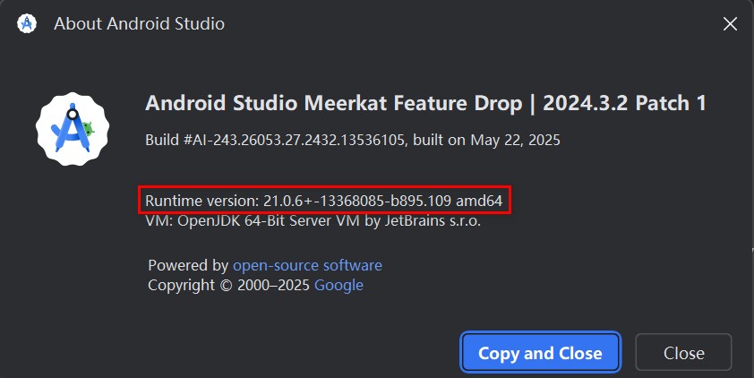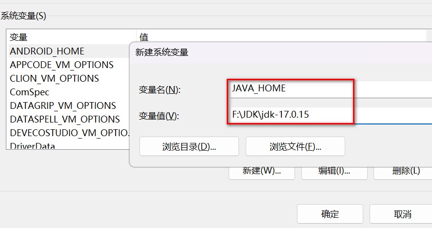 因为下载的是最新版本的android studio(默认配置的是对应jdk21的jbr 21.0.6),我这里使用较新且成熟稳定的jdk17。