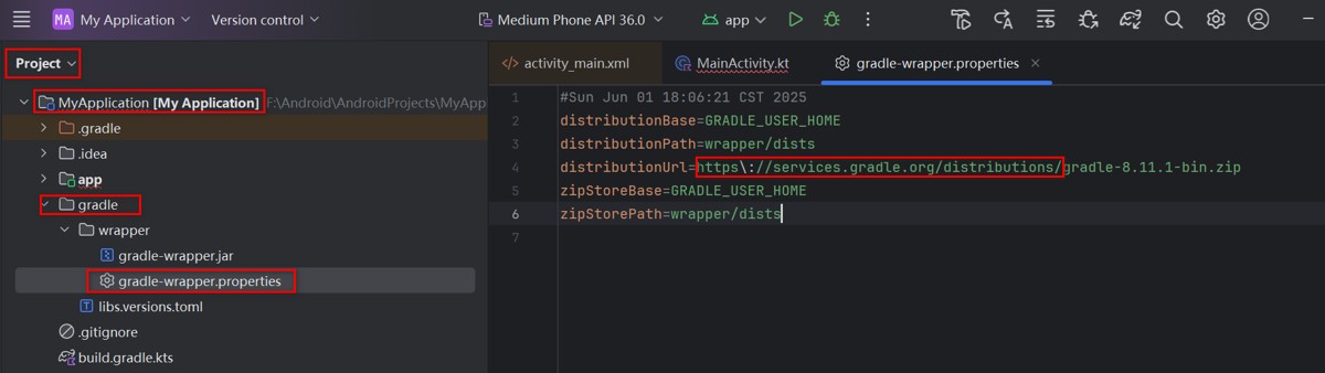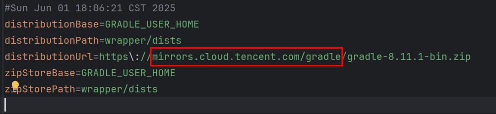 - 按照下图位置修改gradle-wrapper.properties中下载网址为国内镜像源