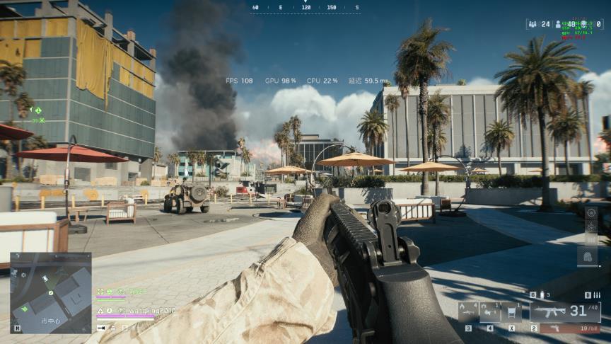 同样是最新大作的《战地6》,我们选择了吃鸡模式,使用最高画质设定进行测试。我们打开了dlss质量模式,并开启了2×帧生成,游戏中帧率可以保持在100+fps,帧率和操控流畅度保持得很好。