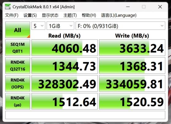 rog魔霸9 mini搭载了1tb pcie 4.0×4 ssd(wd sn8000s),从测试来看确实有旗舰级pcie 4.0×4 ssd的水平,几乎达到了7400mb/s传输速度上限。此外,我们也用一款usb4 ssd移动硬盘测试了rog魔霸9 mini的usb4接口,从成绩来看完全可以跑满40gbps带宽上限,这对于有高速外设连接需求的玩家来说非常适合。
