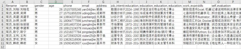 生成的resumes_data.csv为:
