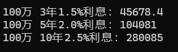 cout << "100万 3年1.5%利息:" << interest_3y_1_5(1000000) << endl; // 约45678.38