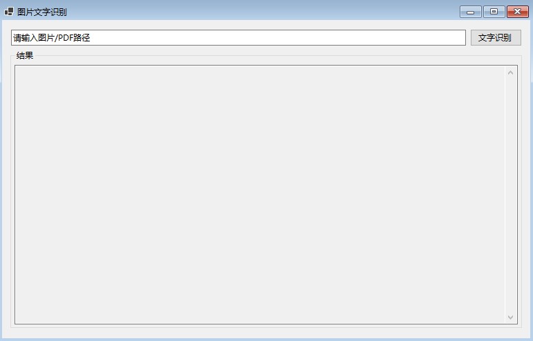 第一个文本框用于输入图片路径,第二个文本框用于显示识别结果,按钮则用于触发 ocr 操作。