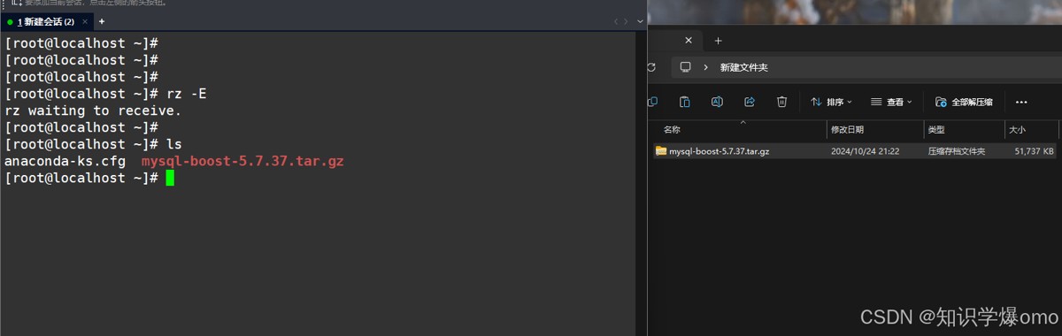之后将在mysql官网上下载的源码包拖动上传至linux系统