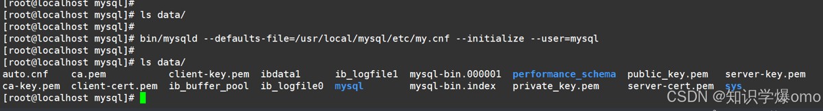 mkdir -p /usr/local/mysql/data #创建安装前指定的数据存放目录