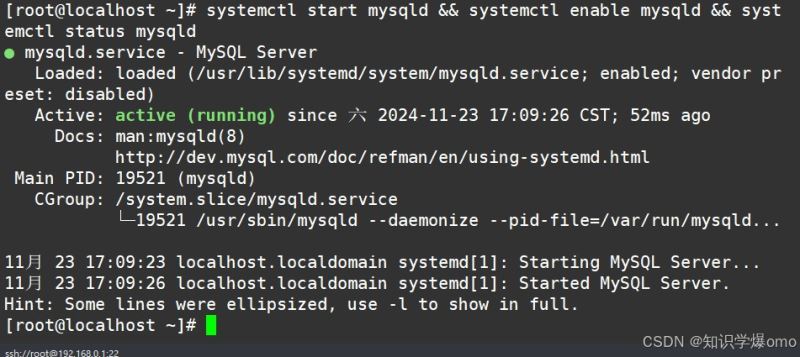 systemctl start mysqld && systemctl enable mysqld && systemctl status mysqld