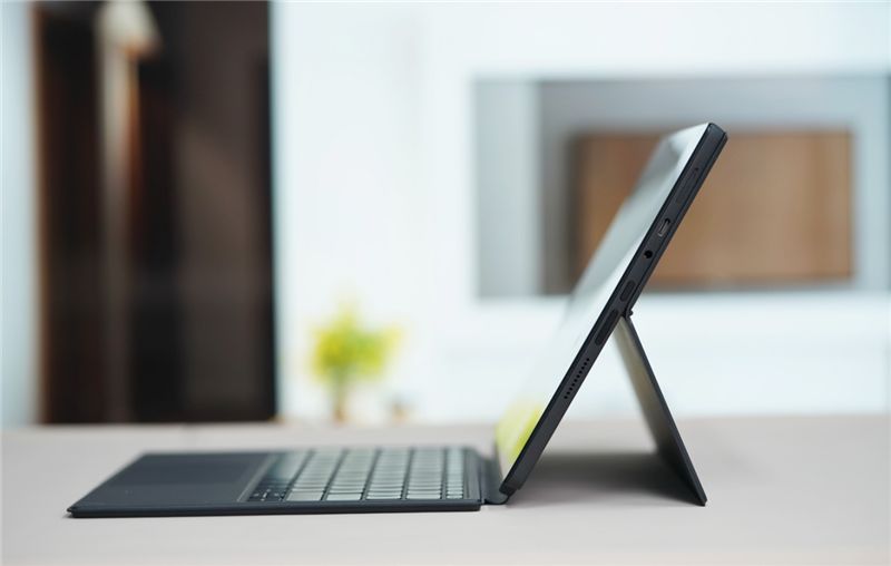 虽然同样都是一台平板电脑再加上一块磁吸键盘,但是传统的二合一平板电脑需要在打开平板的支架支撑在桌面上,会占用大量桌面空间。如果放在腿上,或者是一些比较窄的地方,就难以维持笔记本形态。