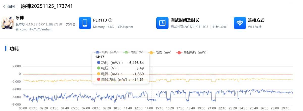 温度表现上,虽然游戏的功耗上限已经超过了《崩坏:星穹铁道》,但机身最高温度只有 41.8°c,温度控制得不错。