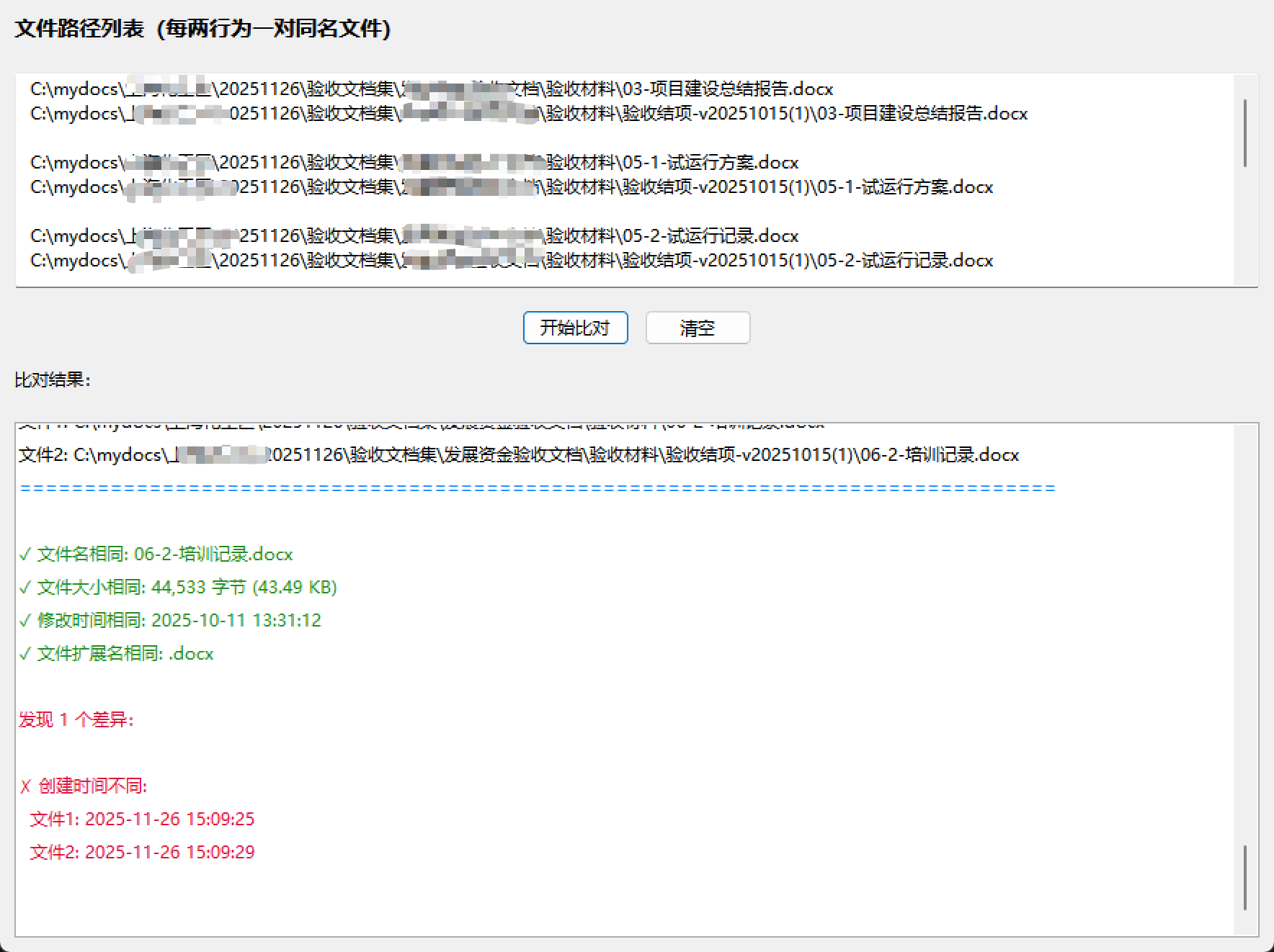 在日常的文件管理工作中,我们经常会遇到这样的场景:同一个文件存在多个版本,或者需要验证备份文件与源文件是否一致。虽然可以手动查看文件属性,但当需要批量比对多组文件时,这种方式既费时又容易出错。