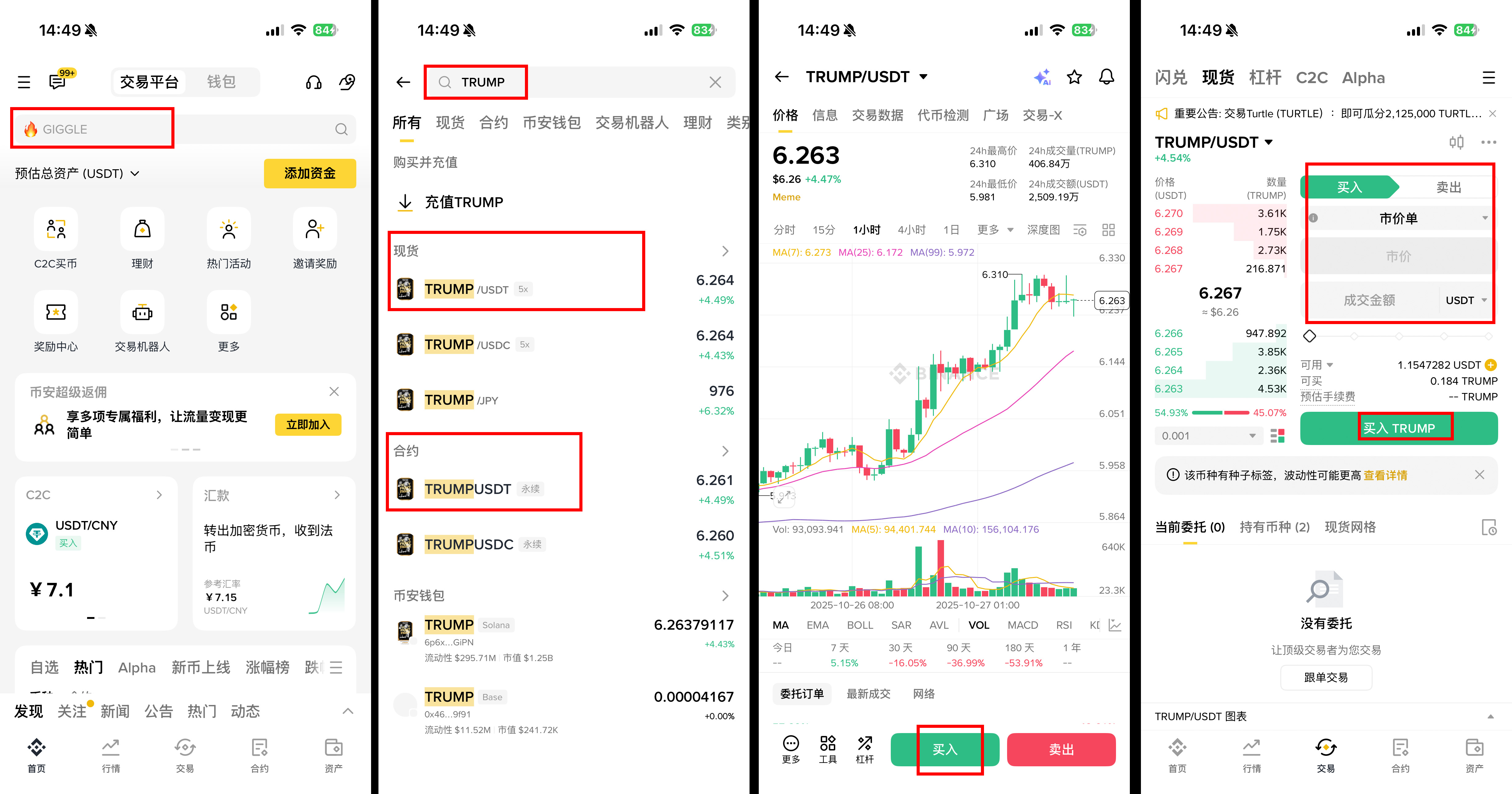 trump币可以在去中心化交易所或市面上多数主流的中心化交易所买,小编用币安交易所来教大家怎么买trump币: