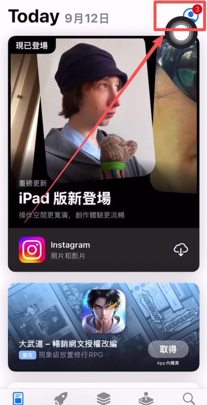 购买完成之后我们就可以去登录了。在appstore里面进行换登,切记一定要在appstore里面进行换登,不要到设置里面进行换登。进来之后点击右上角的小人头像。