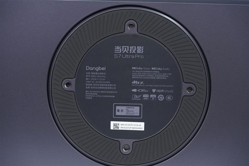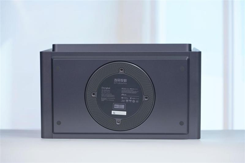 当贝s7 ultra pro投影仪底部圆盘形的底盘,可以很方便的调节投影仪的左右转向。