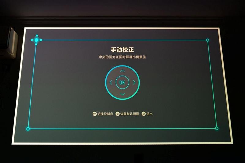 对然条件比较简陋,但当贝s7 ultra pro投影仪依旧能自动校准画面,再稍微手动调整一下位置,避开墙上的空调和插座,就可以开始使用了。