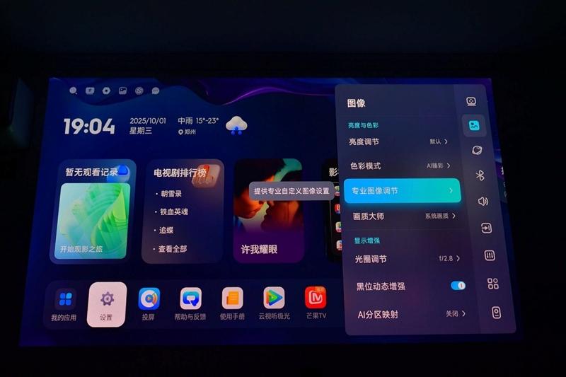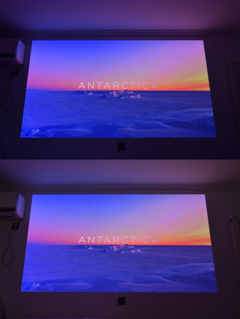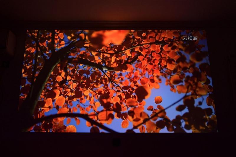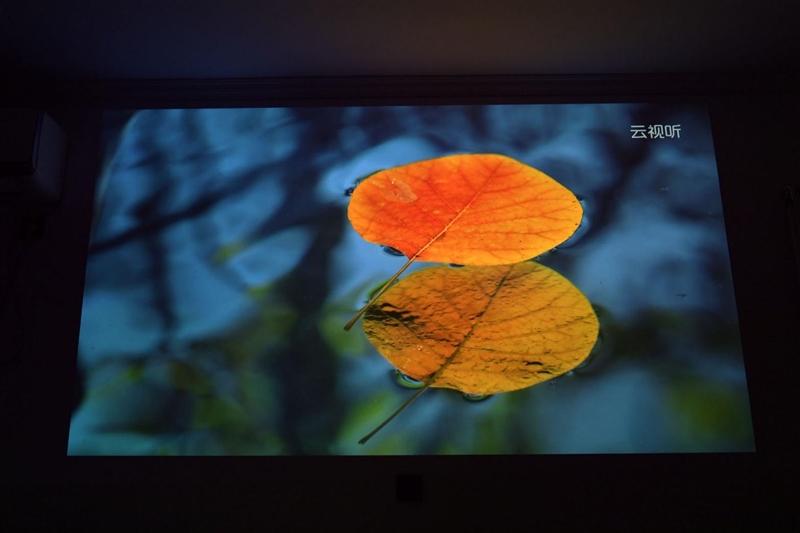 虽然大家都知道,投影机画质要达到最佳效果,遮光必须要做好,但实际上在使用时,大家都当它是个电视,白天晚上打开就看。所以我们也测试了一下在打开室内的漫射灯时,当贝s7 ultra pro投影仪的画面效果。